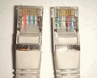 Ini adalah urutan kabel straight, sehingga untuk ujung kabel yang lain urutan pewarnaan kabel tersebut harus berbeda dengan urutan ujung kabel straight ini, inilah yang dinamakan dengan kabel cross, urutan ujung kabel cross adalah seperti ini :